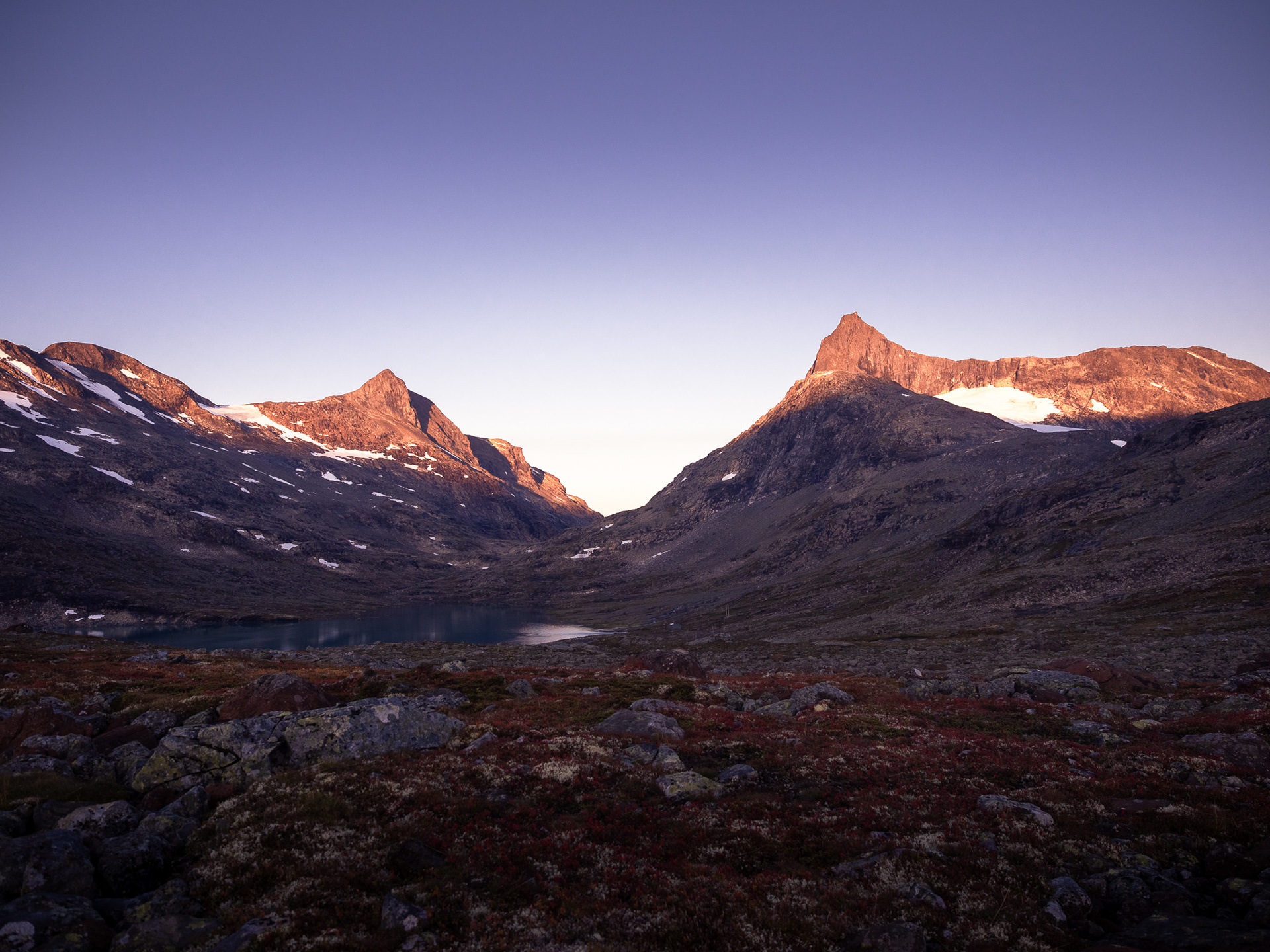 Die Gletscherzunge des Uranosbreen fließt direkt in einen Gletschersee. Nebenan schließen sich noch weitere Seen an, von denen es hier unzählige gibt, einer schöner als der andere. Landschaftlich gehört diese Gegend wohl zu den eindrucksvollsten, die ich in den Bergen bisher erleben durfte. Vermutlich muss ich mal wieder hier her zurück kommen. Schließlich warten noch einige Gipfel darauf, bestiegen zu werden.